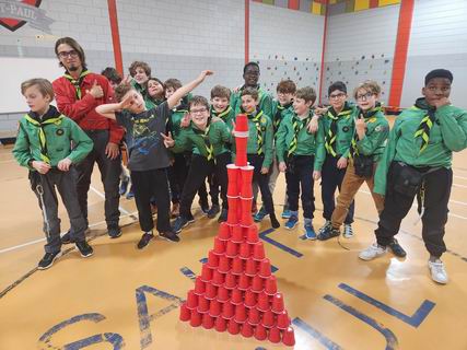 Chaque tanière (équipe) devait construire la plus hauter structure avec des verres.
