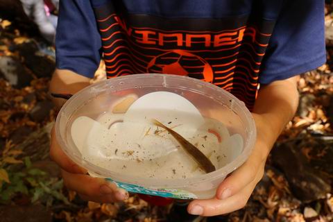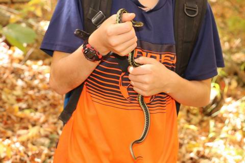 Sur le chemin du retour, on a trouvé une couleuvre rayée.