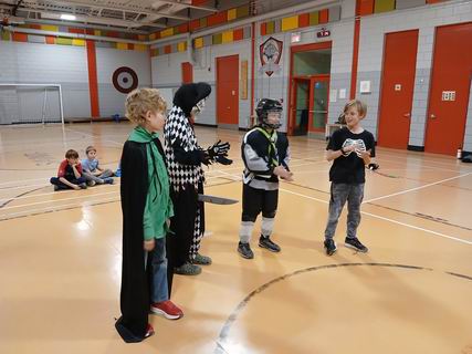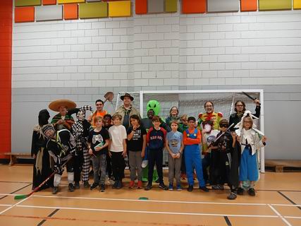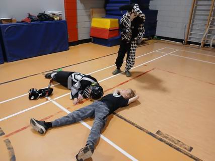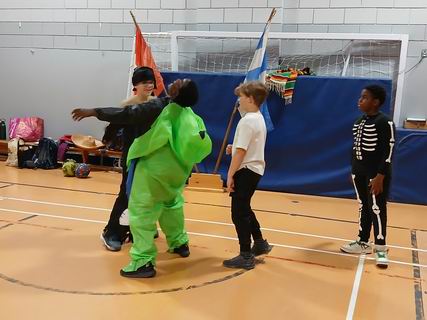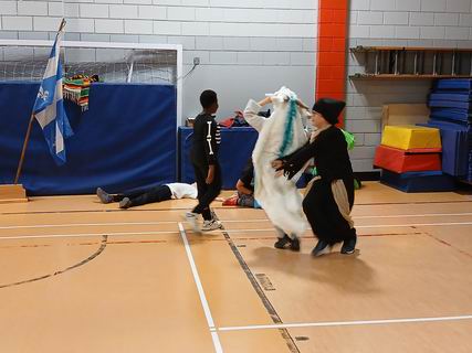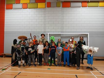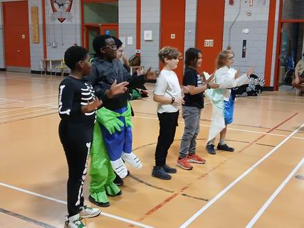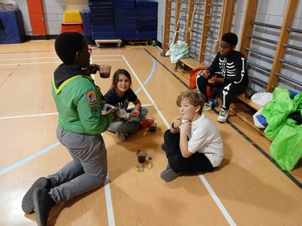 Les louveteaux s'étaient déguisés pour la réunion de l'Halloween. Après avoir chacun décrit son costume, ils ont fait un jeu, ensuite chaque tanière a fait un sketch et un ban puis ce fut suivi du goûter.